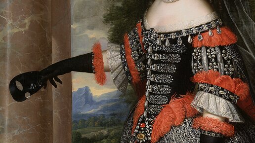 Сегодня мы с вами будем рассматривать в деталях очередной портрет, и сразу предупрежу, что роскошь нас ждёт просто немыслимая! Что неудивительно, поскольку изображена на нём Мария Терезия, супругу Людовика XIV. Помните прелестную маленькую инфанту Маргариту с портретов Веласкеса? Это её старшая единокровная сестра. В браке королева не была счастлива - как известно, у супруга постоянно сменялась череда фавориток (про самую красивую, мадам де Монтеспан, и юную Фонтанж я когда-то писала). Однако всё, приличествующее статусу, в её жизни было...