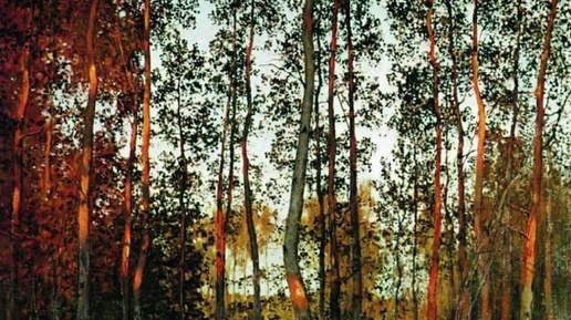 Последние лучи солнца. Осиновый лес. 1897 г. Левитан Исаак Ильич. (1860-1990 гг.) #закат #осина #лес #рисунок #пейзаж #Левитан #sunset #aspen #forest #landscape #drawing #Levitan