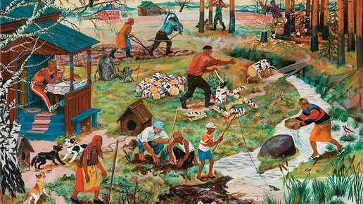 14 русских пословиц: попробуйте найти их все в картине Дины Ельцевой.