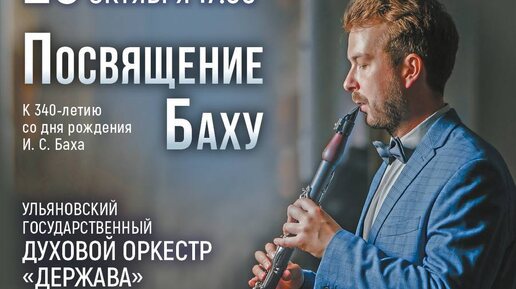 Посвящение Баху 🗓️ 26 октября в 17:00 📍Дворец творчества детей и молодёжи В программе – уникальные аранжировки произведений И. С. Баха для духового оркестра, а также для солиста и духового оркестра, созданные Кириллом Ильиным: Иоганн Себастьян Бах «Чакона»...