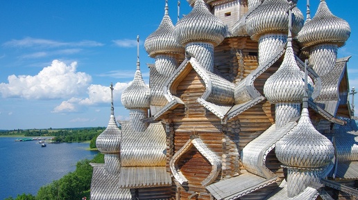 Путешествие по самым удивительным деревянным церквям, сохранившим дух старины. Один из самых узнаваемых памятников. Он был создан в 1714 году и входит в состав ансамбля Кижского погоста, находящегося на острове в Онежском озере. Возведение осуществлялось без единого металлического гвоздя, основная конструкция — из сосновых брёвен, а для кровли использован осиновый лемех, благодаря чему купола имеют серебристый оттенок. До Кижей удобнее всего добираться из Петрозаводска на скоростных кораблях «Метеор» или теплоходах; путь занимает около 1 часа 20 минут...