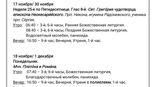 30.11-06.12. Расписание богослужений в Преображенском храме г. Иваново