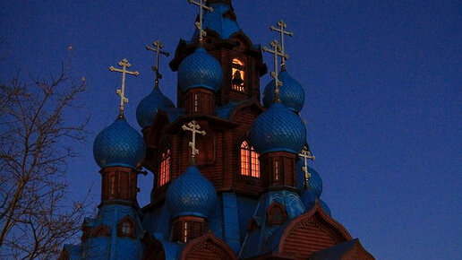 Прогулялись вчера по вечернему Звёздному, полюбовались чудесным храмом Преображения Господня. Красивый храм... Красивый издалека, красивый при ближайшем рассмотрении. Снаружи довольно большой, внутри очень уютный. 9 лет назад мы крестили здесь дочку — ровно через полгода после его освящения. ...Преображенская церковь появилась в нашем городке 10 лет назад. Чудо, не иначе. Даже представить себе не могла, что будет у нас когда-нибудь такая красавица — деревянная, устремлённая ввысь как ракета, с 13-ю голубыми куполами...