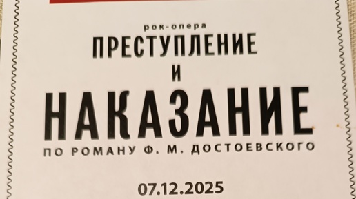 7 декабря 2025 года Здравствуйте, друзья! Когда моя подруга Галина предложила мне послушать рок-оперу "Преступление и наказание", я сразу согласилась, но чего ждать от постановки, представляла себе смутно. Отзывов читать не стала, но понимала, что от произведения Достоевского там мало что может остаться, просто по законам жанра. Вот это и было любопытным. К роману Достоевского я отношусь без должного пиетета, уж простите меня поклонники великого автора. Ну не понимаю я основной идеи этой драмы....