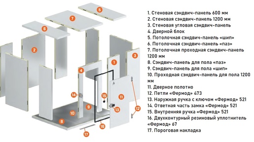 Быстросборные модульные холодильные камеры подходят для использования в торговых предприятиях, кафе, ресторанах, на пищевых производствах и везде, где необходимо поддерживать температурный режим продукции. Холодильные камеры предназначены для кратковременного хранения предварительно охлажденных пищевых продуктов. Эксплуатация камер возможна в отапливаемых и неотапливаемых помещениях, под навесом, при температуре окружающего воздуха от -30°С до +40°С и относительной влажности не выше 80%. Рекомендуемый...