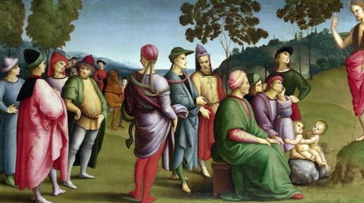 Рафаэль Санти, Проповедь Иоанна Крестителя, 1505 "Приготовьте путь Господу! Сделайте дорогу прямой! Сравняйте горы и овраги с землей! Пусть мир увидит спасение Свыше!" (см. Ис 40). Так, словами пророка Исайи, Лука говорит о служении Иоанна Крестителя. Проповедь Иоанна захватывает тысячи. Толпы идут на берег Иордана. Люди чувствуют дыхание перемен и хотят найти свое место в Грядущем. Иоанн - голос Бога в пустыне нашей жизни. В этом голосе мы слышим вызов. Голос говорит: у корней дерева лежит топор...