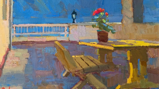 Сегодня поговорим о картинах нашего современника Ильи Птичкина. Словно энергии, в них запечатленной. Сейчас увидим. Как например в этой картине. Сразу обращаешь внимание, что букет большой. Солнце желтых цветов в небесной дымке цветения луговых трав. Блестящая эмалевая поверхность — ниспадающим потокам воды созвучна. Даже скатерть своими оттенками впечатление продолжает. В дополнение взмах крыльев бабочки, энергию полета отображающий. Невероятная энергия лета, одним словом и — одной картиной! И в этой картине цвет не случаен — энергию картине придает...