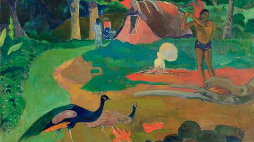 Картина Поля Гогена «Матамое (Смерть). Пейзаж с павлинами» привлекает внимание контрастом мрачного названия и жизнеутверждающего пейзажа таитянского леса. В углу картины художник своей рукой оставил надпись «смерть» на таитянском языке. Марина Александровна Бессонова, легендарный искусствовед Пушкинского музея, предложила интересную трактовку этого противоположения. Она ссылается на дневник Гогена «Ноа Ноа», где художник описывает, как во время рубки деревьев бок о бок с таитянами ощутил в себе «смерть» европейца...