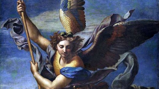 «И произошла на небе война: Михаил и Ангелы его воевали против дракона, и дракон и ангелы его воевали против них, но не устояли, и не нашлось уже для них места на небе. И низвержен был великий дракон, древний змий, называемый диаволом и сатаною, обольщающий всю вселенную, низвержен на землю, и ангелы его низвержены с ним…” В картине...