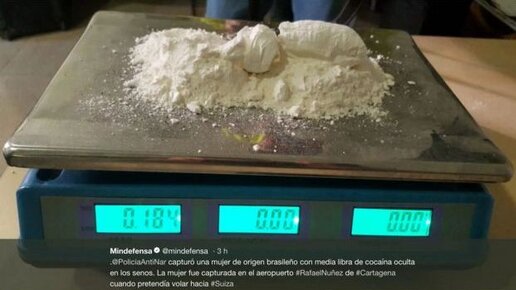 Курьёзный случай произошёл в колумбийском аэропорту «Рафаэль Нуньес» города Картахена. Проходя мимо полицейских ничем не примечательная женщина споткнувшись упала. Казалось бы ничего курьёзного, если бы резко поднявшись женщина не начала судорожно копошиться в собственном бюстгальтере. Что собственно привлекло стражей порядка, а результат не заставил себя долго ждать. Но по порядку. На фотографиях Вы можете увидеть как женщина, в сопровождении полицейских, показывает свой бюстгальтер и его содержимое, как доказательство того, что она была захвачена антинаркотической полицией...