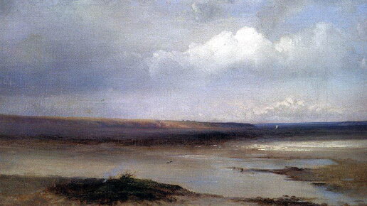 Родоначальник русского лирического пейзажа А.К. Саврасов и русские реки. Чаще всего он, разумеется, писал Волгу, а внимания больше всего уделял передаче воздуха. Сама живопись получилась многослойной и богатой оттенками.