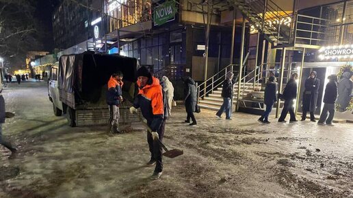 В Махачкале обработали тротуар на проспекте Расула Гамзатова против гололеда