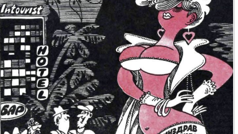 Привет, друзья! А вы видели нашу предыдущую подборку с чудесными рисунками замечательного художника Леонида Насырова? Я обещала подборку еще с девушками определенной профессии. Просто мне как-то сразу попались несколько таких его картинок и я решила, что их будет много. Но я ошиблась. Их было всего несколько штук и все они в этой подборке. И я ее дополнила другими картинками, на которых изображены просто девушки в костюме Евы. Кстати, вот и сама Ева: А вот этот рисунок не самостоятельная карикатура, а оформление календаря: А вот те самые, уже знакомые картинки...