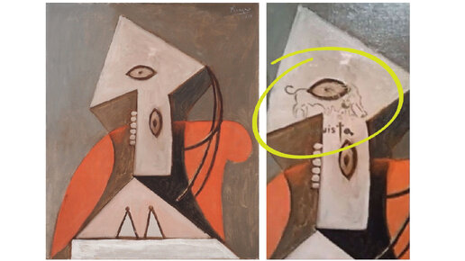 Как утверждает Википедия: «На портрете, вероятно, изображена анонимная модель, но по общим очертаниям она напоминает Ольгу Хохлову, жену художника, с которой он расстался примерно в 1927 году». Наверняка, Ольга выглядела бы иначе если бы в 27 году их отношения не начали стремительно ухудшаться. Ранее Пикассо изображал Хохлову нежной и доброй, но, когда их отношения испортились, он стал придавать ей резкие и зловещие черты...