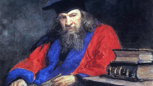 Ожившие портреты. Художник, Репин И. Е. - Портрет Д. И. Менделеева в мантии профессора Эдинбургского университета.
