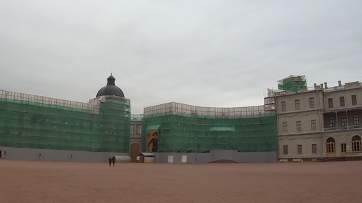 В Гатчинском дворце сегодня полным ходом идет реставрация фасадов...