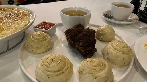"На Лермонтова" - ресторан-музей национальной кухни в самом центре Махачкалы. Удобное расположение - в 10 минутах ходьбы центральная Джума-мечеть, ещё чуть подальше - городской пляж. Интерьер очень внушительный и колоритный. Повсюду за стеклом национальные наряды, украшения, глиняные тарелки и кувшины, изукрашенные кинжалы и щиты. Даже кофемашина укутана в бронзу, исписанную восточными узорами - никогда такого не видел. Почти оружейный зал Эрмитажа:) Ласковым южным вечером мы выбрали разместиться на просторной веранде...