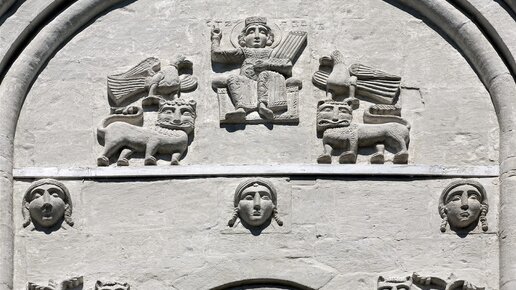 Церковь Покрова на Нерли - это поэма в камне, поэма русской природы, тихой грусти и просветлённого созерцания. Построена по заказу Андрея Боголюбского после кончины любимого сына Изяслава. Вот такие общеизвестные факты, которыми чаще всего и заканчиваются рассказы про этот прекрасный памятник архитектуры. А между тем, стены его украшены крайне любопытным скульптурным узором, давайте сейчас разберемся, какими. Царь Давид на троне в окружении парных скульптур львов и голубей, прижимая к себе струнный музыкальный инструмент – псалтирион – и благословляя воздетой правой рукой...