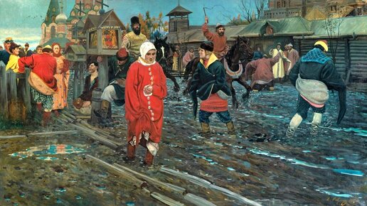 Крестьянский художник успел передать потомкам холсты и мечты о прекрасном Зима 1899 года. Петербургский бомонд заполнил залы выставки объединения "Мир искусства". Сверкание мундиров, аксельбантов, фраки, блеск белоснежных воротников. Сам августейший президент Академии художеств на открытии экспозиции... Не торопясь, кружится светская карусель. Вокруг большого холста в центре одного из залов суетное движение замирает. Здесь словно окно прорублено в стене - в самую гущу бытия народного. "Московская улица XVII века"...