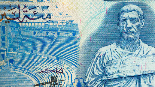 В 106 году нашей эры римский император Траян покорил Набатейское царство (самым известным памятником которого является знаменитая Петра в Иордании). Город Босра стал столицей новой провинции в составе империи — Аравия Петрейская. Город стал активно расти и, в том числе, во II веке был построен римский театр, изображенный на этой банкноте. Справа изображен бюст Филиппа I Араба (204 - 249), представителя сирийской династии, при котором город достиг наибольших высот. Считается некоторыми историками первым римским императором-христианином...