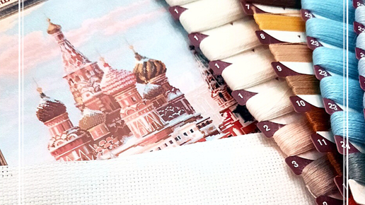 Продолжаю рассказывать о вышивке наборов серии "Достопримечательности" от Риолис. Так вышло, что я уже давно закончила три картины из этой серии. О первых двух на моем канале уже были публикации - это "Кул Шариф" и "Храм Христа Спасителя". Сегодня я расскажу вам о третьей работе - "Соборе Василия Блаженного". Меня привлекла эта картина прежде всего своим дизайном: красочный собор, морозное реалистичное небо. Процесс работы над картиной с первых стежков обещал быть очень интересным. По составу этот набор практически ничем не отличается от предшествующих: Размер готовой работы 40 на 40 см...