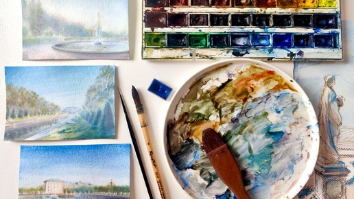 Петергоф хочется рисовать бесконечно! Маленький формат позволяет "примерить" композицию, поработать с палитрой и воздушной перпективой