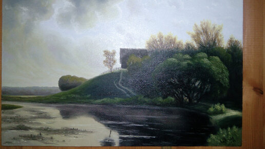 Что может рассказать картина? Смотря на эту картину, я увидел так. Перед глазами, домик на холме, А снизу речка чистая виляет, Все так красиво, словно в сладком сне, Лишь ветер в небе тучи подгоняет. У дома на холме, высокий дуб, Тропинка криво к дому пробегает, Кого-нибудь наверно в доме ждут, И тот, сюда не часто приезжает. У речки сгорбившись, сутулился рыбак, Который час поклевку ожидая, И все же он не унывал никак, Под нос тихонько, что-то напевая. А может просто здесь привыкли ждать? Когда в дали появиться машина, И мать навстречу, побежит обнять, Так редко приезжающего сына...