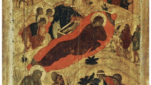 История рождественской иконографии началась задолго до эпохи великого русского художника. Первые образы Рождества появились примерно за тысячу сто лет до творчества Андрея Рублева. Историк Евсевий Кесарийский свидетельствует, что уже около 330 года император Константин повелел построить в Вифлееме храм Рождества Христова, где непременно присутствовала соответствующая икона. Самые древние известные нам изображения Рождества сохранились на серебряных сосудах, датируемых V—VII веками. Иконопись претерпела...