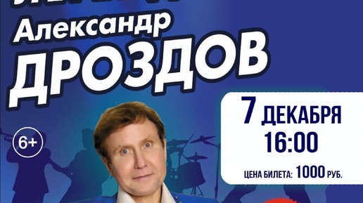 ❗Билеты в кассе МБУК СККЦ "Юбилейный" 🎤 Александр Дроздов — обладатель уникального бархатного голоса, композитор, поэт в МБУК СККЦ "Юбилейный" ! 📅 7 декабря 🕓16:00 🏠 Сиверский кино - культурный центр "Юбилейный" (п. Сиверский, ул. Вокзальная, 12). Тел.8(81371) 44333 🔥И этот голос будет звучать на концерте ИСКЛЮЧИТЕЛЬНО вживую минимум два часа! 🎼🎶Александр Дроздов — певец, обладающий уникальной вокальной акустикой и разлётным звуком, чей голос ласкает слух зрителей в концертных залах по...