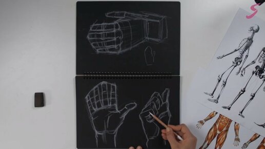Для работы над этими схемами по предложенному уроку нам понадобятся: Если говорить о форме кисти, обобщенно ее можно свести к форме варежки. Нарисуем ее в горизонтальном положении. Кисть крепится к лучевой и локтевой костям в лучезапястном суставе, где расположено множество мелких костей...