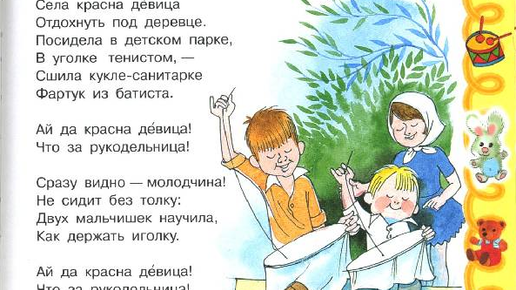 Умение шить, штопать, вязать считалось достоинством девочки и женщины. И мальчиков тоже учили. Советское трудовое воспитание. Рукодельница. Автор Агния Барто. Села красна девица