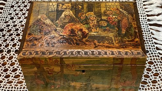 Русская шкатулка всегда славилась удивительной отделкой. На крышках создавались не просто красивые узоры, а целые сюжетные картины!⠀ В конце XIX века при Кустарном музее Сергиева Посада была разработана роспись с применением выжигания по дереву. Она получила большую популярность, и её стали называть по фамилии автора «соколовская». Московское губернское земство в 1891 г. открыло в Сергиевом Посаде учебно-производственные мастерские, в которых с местными кустарями работали такие известные художники, как Малютин, Васнецовы, Соколов...