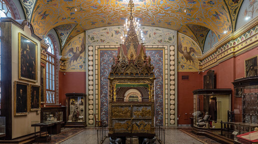 Сегодня приглашаем вас в залы № 17 – 19, которые задумывались как экспозиция, посвященная эпохе правления Ивана Грозного. Их планировка напоминает древнерусскую «тройню», когда к «палате» (зал № 18) с двух сторон пристраивались малые «клети» (залы № 17 и 19). Сейчас 17 зал отчасти раскрывает время Ивана IV, но его основная тема – «Сибирь в XVI – XVII вв.». При открытии музея успели выполнить только мозаичный пол, к остальным работам по отделке интерьера приступили уже в 1898 г. При оформлении зала № 17 ориентировались на Покровский собор (собор Василия Блаженного)...
