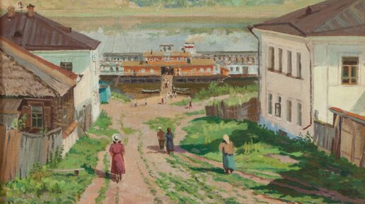 Картина написана за несколько лет до постройки новой набережной в связи с подъёмом воды в Волге. Художник запечатлел переулок, спускающийся на набережную с улицы Ленина (бывшей Воскресенской) к пристани, которая позднее, уже в 1960-1980 гг. принимала скоростные суда на подводных крыльях. Борис Николаевич написал одну из улочек старого Плёса с купеческими особняками. Раньше она называлась Шемякинской, потому что на ней было много домов, принадлежавших плёсским жителям Шемякиным. После революции Шемякинская улица стала Советским переулком...