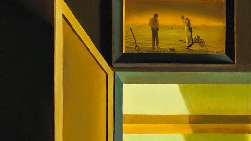 Сальвадор Дали. Гала и «Анжелюс» Милле, предшествующее неизбежному приходу конических анаморфоз. Около 1933. Дерево, масло. 24,2 х 19,2 см. Национальная галерея Канады, Оттава. На этой работе Сальвадор Дали в очередной раз продемонстрировал своё художественное мастерство и сюрреалистические фантазии. Кто эти старца на картине? Один с раком на голове, другой – сидит за столом с просматриваемым нимбом над головой...