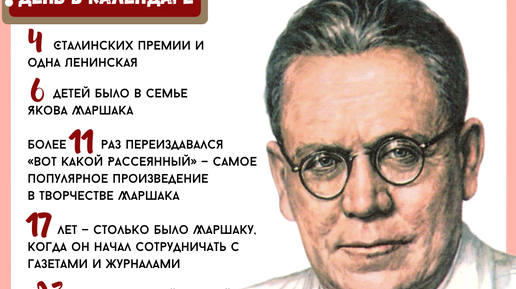 🗓️3 ноября в слободе Чижовка Воронежской области родился Самуил Яковлевич Маршак (1887-1964), автор известных произведений для детей, таких как «Кошкин дом» и «Двенадцать месяцев», которого смело можно назвать творцом детства. Отец Маршака, химик-технолог, часто менял место работы, что вынуждало семью переезжать. Самуил начал сочинять ещё до того, как научился писать, а в 6 лет уже писал на русском, идише и иврите. В гимназии он перевёл поэму Горация «В ком спасение». Когда семья переехала в Петербург, Самуил остался с младшим братом, чтобы избежать проблем из-за еврейского происхождения...