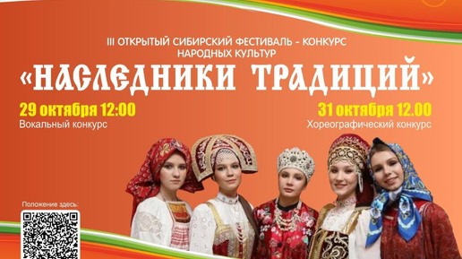 «Наследники традиций»: в Абакане готовятся к III фестивалю-конкурсу народных культур С 29 по 31 октября в наш город съедутся самые талантливые исполнители и творческие коллективы Сибири. В конкурсной программе два направления: вокальное и хореографическое искусство. 29 октября на сцене Абаканского Дворца Молодёжи выступят участники в номинациях «Народный вокал» и «Народно-стилизованный вокал», а 31 октября танцоры-народники...