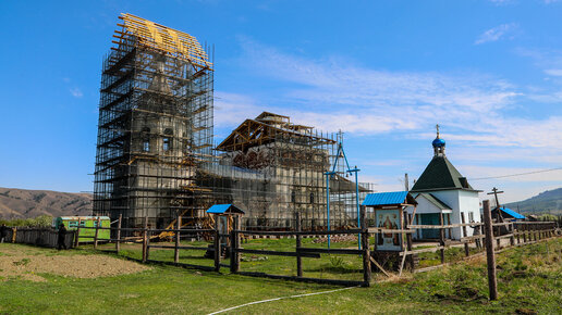 В 8 километрах от Нерчинска, на правом берегу Шилки, расположено село Калинино с уникальной для Забайкалья достопримечательностью - Успенской церковью 1712 года рождения. Сейчас она перерождается и прячет себя в строительных лесах, и это здорово, что о ней вспомнили. А так село Калинино появилось благодаря учреждению по указу Петра I первого в Восточном Забайкалье православного монастыря - оплота христианства на дальней, еще совсем необжитой окраине страны. В 1707-1710 году была построена деревянная церковь (спустя пару десятков лет сгоревшая), а в 1712 году был освящен каменный Успенский храм...