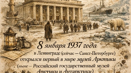 8 января 1937 года в Ленинграде произошло событие, вошедшее в мировую историю освоения Севера: открылся первый в мире музей, посвящённый Арктике. Сегодня он известен как Российский государственный музей Арктики и Антарктики (РГМАА) — уникальное учреждение, хранящее память о героических страницах исследования полярных регионов. История музея началась ещё в 1930 году, когда он был создан как специализированный отдел Всесоюзного арктического института (ВАИ). Институт, в свою очередь, возник на базе Института по изучению Севера, основанного в 1920 году...