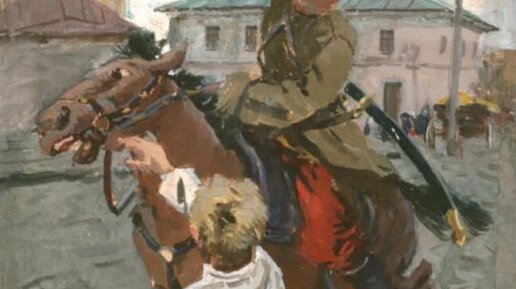 Алексей Ткачёв (1925 г.р.) и Сергей Ткачёв (1922—2022). Серёжа Брузжак защищает старика-еврея от петлюровца. Иллюстрация. 1954—1955