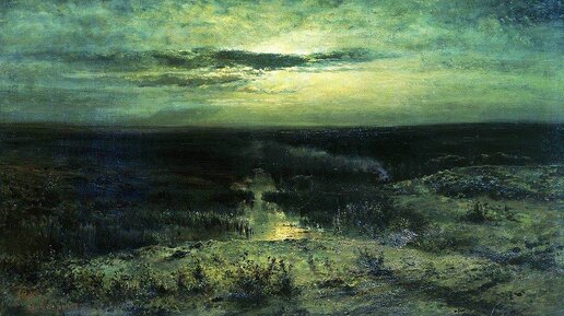 Как и вечерние, ночные пейзажи А.К. Саврасов стал писать уже в 1870-х годах. Написал он их не очень много, но взглянуть на них всё равно стоит. Сама идея написать ночь - сложная. Цвета не такие, как днём, передать их сложно, потому что всё покрыто сумраком, но при этом - необязательно тёмное, необязательно мрачное. Куинджи, чтобы передать ночное сияние экспериментировал с красками...