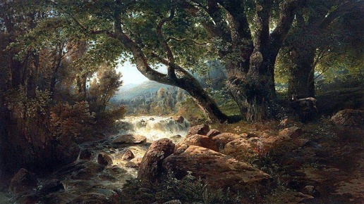 🌊 "Водопад" Саврасова: путешествие между эпохами Алексей Саврасов, академик пейзажа, в 1860-е путешествовал по Европе, впитывая уроки старых мастеров и современных романтиков. Его "Водопад" (1868) – словно диалог с великими: здесь и драматичный свет Якоба ван Рёйсдала, и мощь швейцарских пейзажей Калама, и свежесть Констебла. Бурный поток, озарённый таинственным светом, прорывается сквозь тенистый лес. Гигантские валуны, вековые деревья – всё дышит wild nature, но выписано с почти голландской точностью...