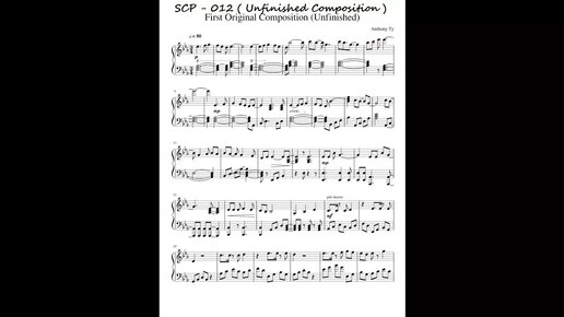 Во время одной из операций Фонда SCP была обнаружена таинственная партитура, обозначенная как SCP-012. На первый взгляд, это была простая музыкальная нотация, однако, как только кто-то пытался сыграть ее, происходили ужасные вещи. Каждый, кто прикоснулся к инструменту и начал исполнять мелодию, внезапно погружался в состояние полнейшего безумия. Исследования показали, что ноты SCP-012 вызывали не только неотразимое желание играть, но и смертельную зависимость. Исполнители теряли связь с реальностью,...