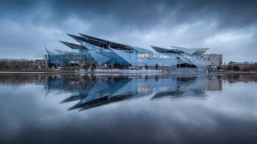 Футуристическое здание на берегу озера Кабан готово к переезду труппы. ..."22 декабря 1906 года в Казани представителями прогрессивной молодежи был сыгран первый публичный спектакль на татарском языке. В этот день были представлены пьесы "Жалкое дитя" и "Беда из-за любви" . Эта дата считается днем рождения татарского театра, хотя еще в конце XIX столетия были написаны первые татарские пьесы, которые ставились на сценах школ-медресе и домашних театров". Представьте себе вес каждой металлической чешуйки на потолках 60 кг! Листайте! >>> Ждём открытие нового дома театра Камала в декабре...