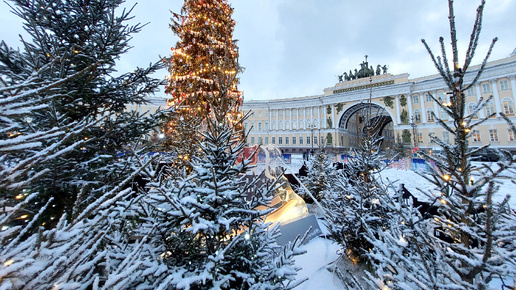 Чтобы попасть в музей «Эрмитаж», нужно сначала прийти на Дворцовую площадь. Там стоит красивый Зимний дворец. Сделайте фото на фоне его фасада — он зелёного с голубым оттенком. Но раньше дворец был другого цвета. Архитектор Растрелли хотел, чтобы он был светло-жёлтым, при Николае II стал кирпичным, а во время войны — серым. Современный цвет дворец получил только в 1947 году. Строительство Зимнего дворца началось при императрице Елизавете Петровне, но она не дожила до его окончания. Её племянник Пётр III переехал туда сразу после постройки...