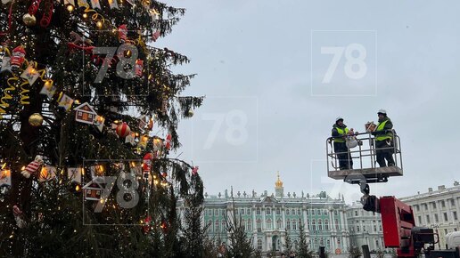 С ёлки на Дворцовой площади сняли первые новогодние игрушки