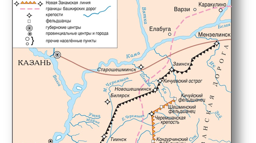 Деревянная крепость просуществовала примерно до 1820-х годов Закамская оборонительная линия сооружалась в 1652-56 гг с целью защиты подданных русского государства от набегов кочевых народов: калмыков, ногаев, башкир, киргиз-кайсаков (казахов) и каракалпаков. Начиналась на левом берегу Волги(Идел) и заканчивалась у реки Ик(Ык). Протяженность линии составляла 450 км. Говоря современным языком, эта была укрепленная Государственная граница. На оборонительной линии были построены города - крепости(пограничные заставы-форпосты) Белый Яр, Ерыклинск, Тиинск, Новошешминск, Заинск и Мензелинск...