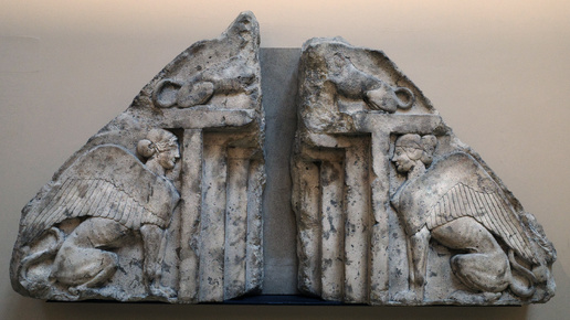 В отличие от египетского, греческий сфинкс изображался в виде существа с головой и грудью женщины, телом льва, крыльями птицы и иногда змеиным хвостом.