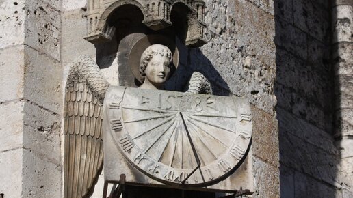 В готических соборах какую горгулью за хвост ни потяни - вытянешь историю. Вот ангел с солнечными часами на фасаде Шартрского собора, например. Который на самом деле не ангел вообще (ну, говорят). Больше всего об этом ангеле можно почерпнуть в книге Жана Виллета Les portails de la cathédrale de Chartres ("Порталы Шартрского собора). Он стоит на углу, чтобы часы смотрели в южную сторону, а сама статуя, как и часы - копия, сделанная в 1974 году. Оригиналы была перенесена в крипту собора шестью годами...