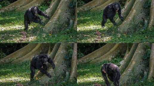 Музыканты из джунглей: самцы шимпанзе барабанят по корням деревьев в своем уникальном ритме